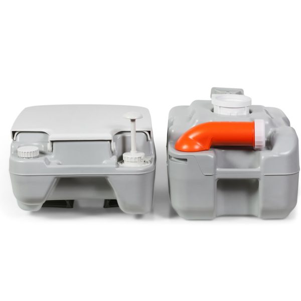 · TANQUE SANITÁRIO: O tanque do sanitário de 20 litros comporta mais do que a maioria dos outros sanitários portáteis de camping, o que significa que você terá que esvaziá-lo com menos frequência. E a indicação do nível do tanque de água residual permite que você saiba quando é a hora!